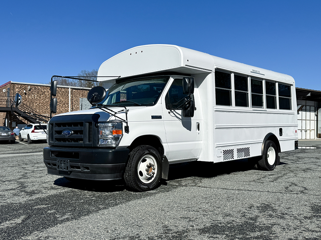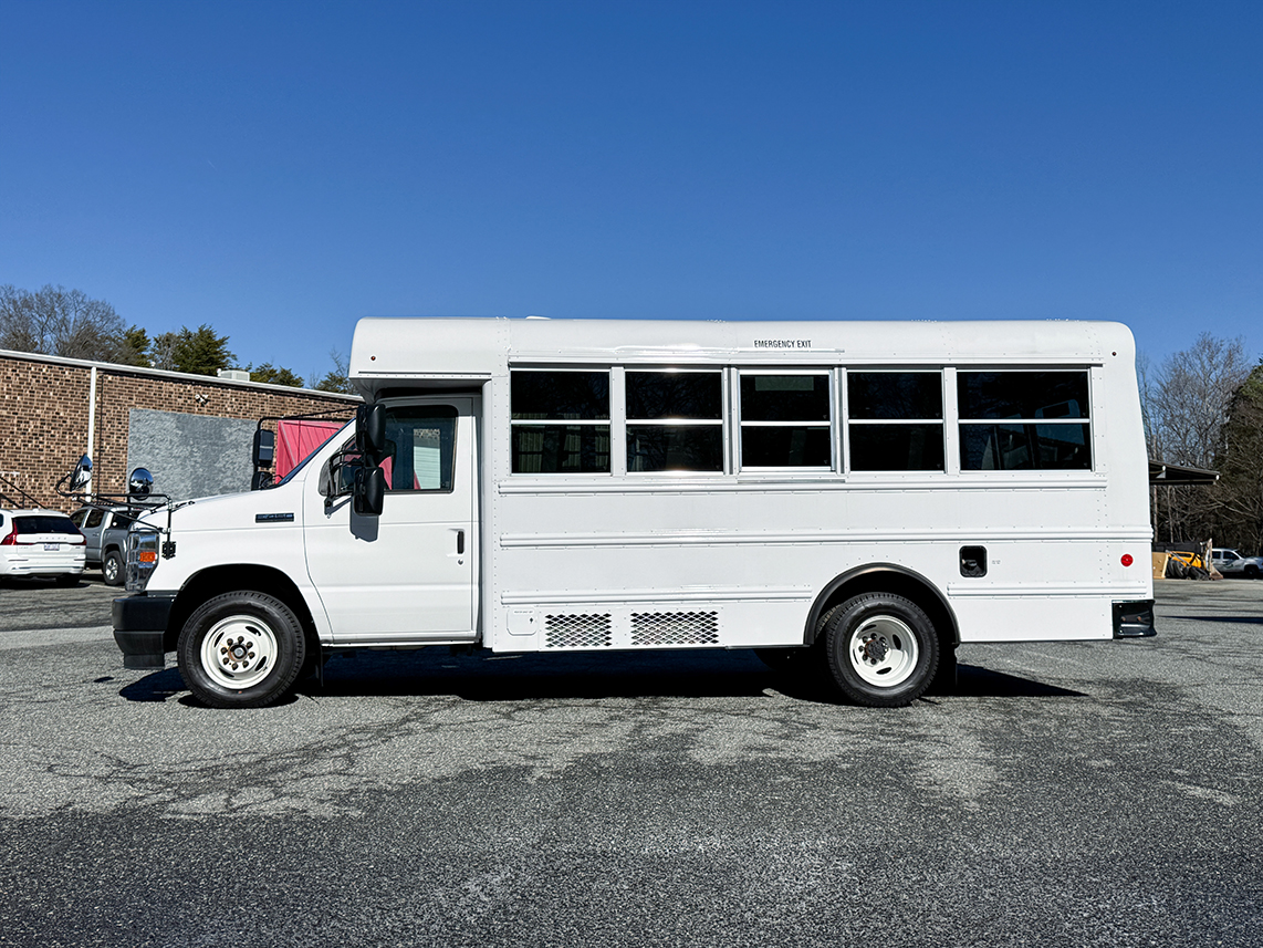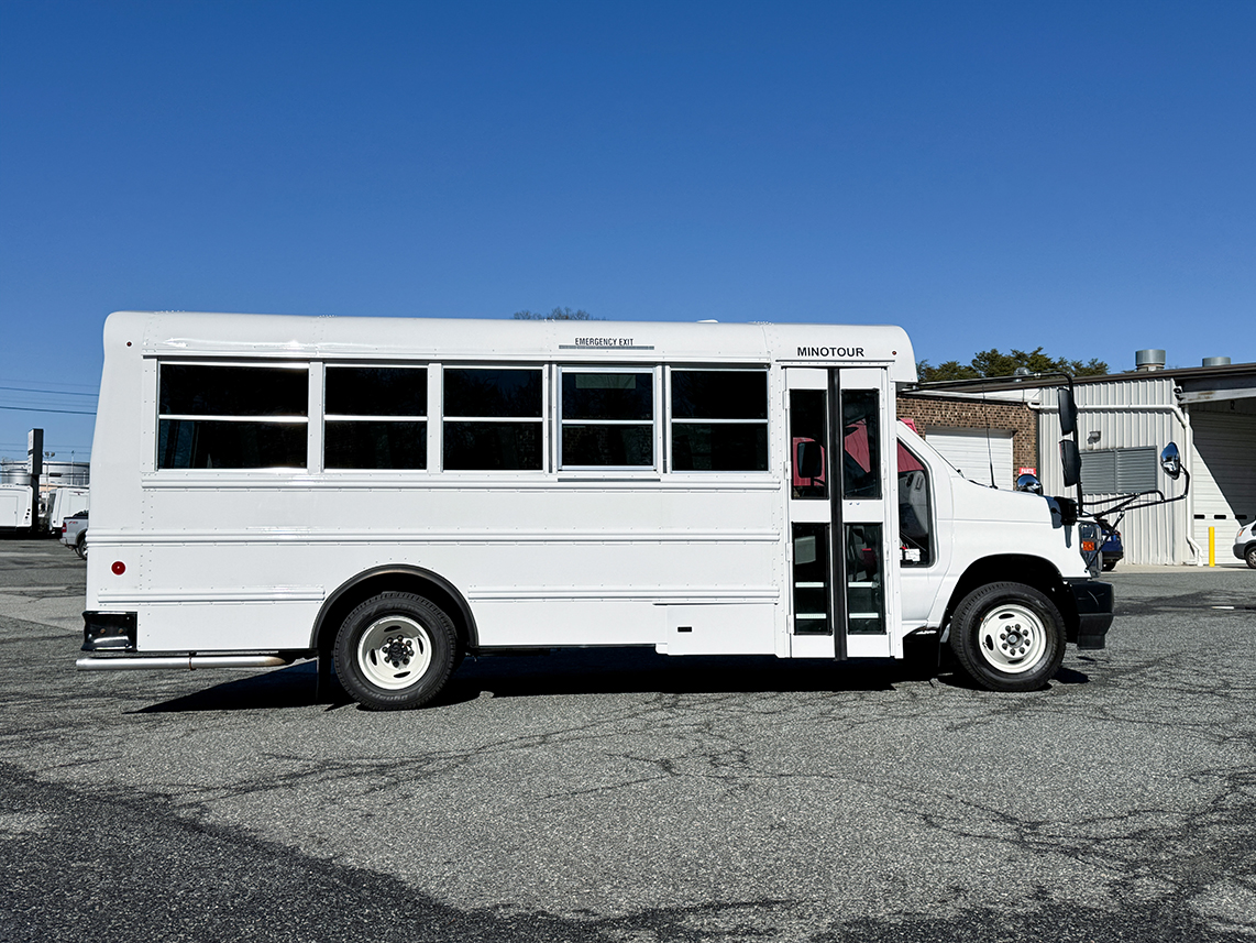 The Thomas Minotour 051 DRW is a Multi-Function School Activity Bus (MFSAB) that meets all NC specifications and FMVSS requirements to transport school-aged children. Comfortably seats 14 passengers + Driver and comes with STD bench seats with lap belts and ISO latches. Includes power-adjustable heated mirrors and backup camera with display for added safety. Ford 158″ WB chassis. Non-CDL classification makes it perfect for Private school, Activity, or Child Care use.